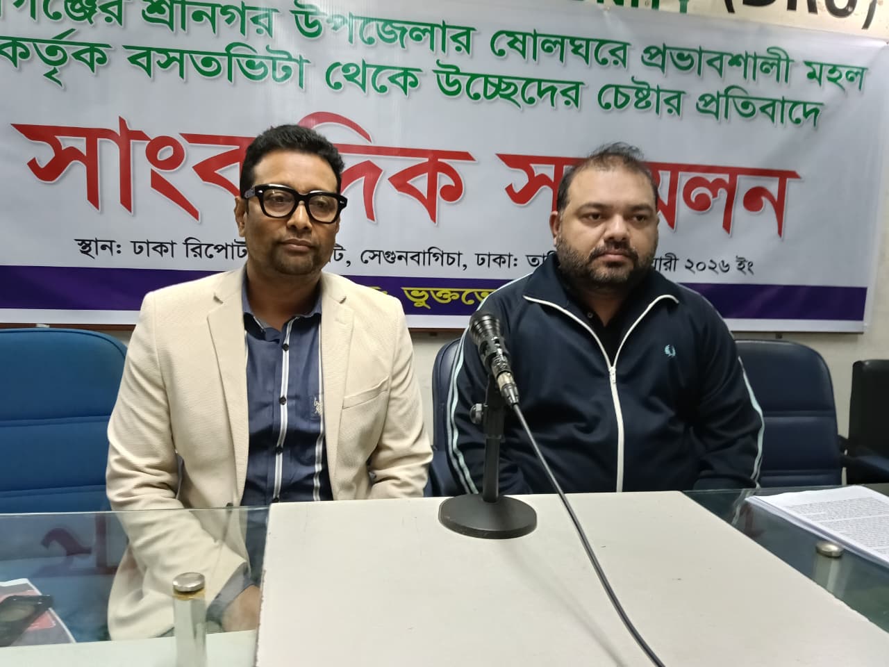 মুন্সিগঞ্জের শ্রীনগরে ষোলঘরে প্রভাবশালী মহল কর্তৃক বসতভিটা থেকে উচ্ছেদের চেষ্টার প্রতিবাদে সংবাদ সম্মেলন