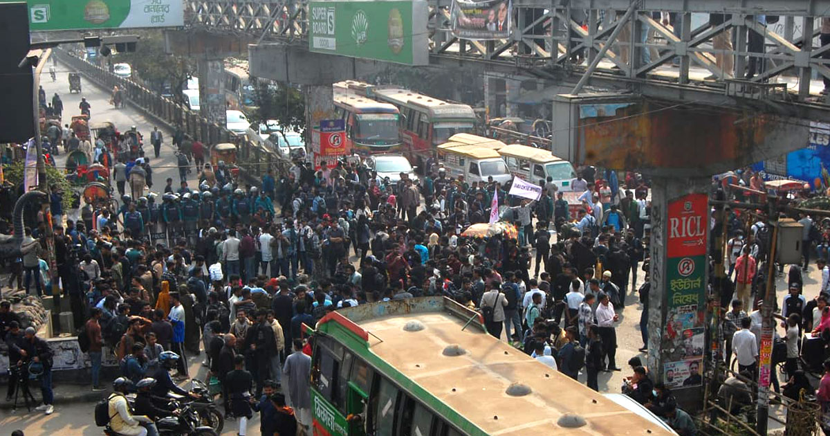 সাত কলেজ নিয়ে প্রস্তাবিত ঢাকা সেন্ট্রাল ইউনিভার্সিটির অধ্যাদেশ দ্রুত জারির দাবিতে সায়েন্স ল্যাব মোড়ে শিক্ষার্থীদের অবরোধ