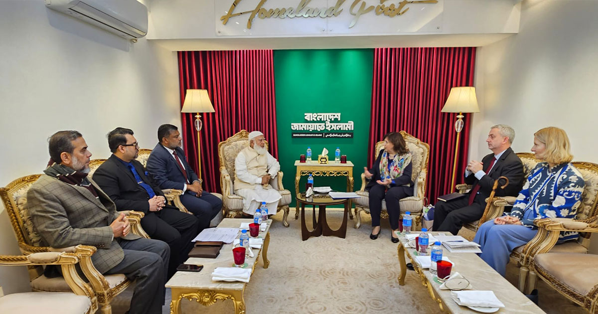ইউরোপীয় এক্সটার্নাল অ্যাকশন সার্ভিসের এশিয়া ও প্রশান্ত মহাসাগরীয় বিভাগের পরিচালক পাওলা পাম্পালোনির নেতৃত্বে তিন সদস্য বিশিষ্ট প্রতিনিধি দলের সঙ্গে জামায়াতে ইসলামীর আমিরের সৌজন্য সাক্ষাৎ
