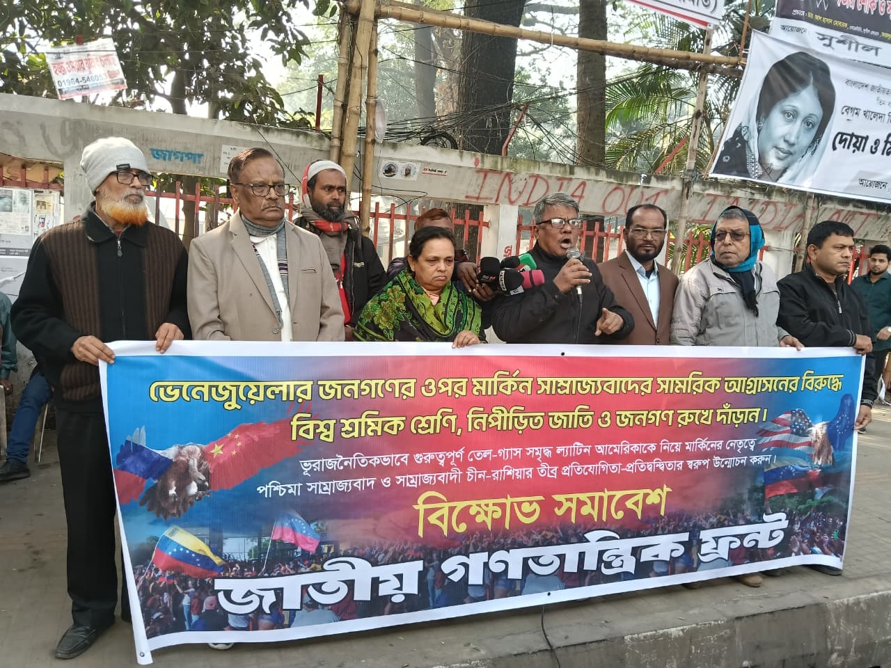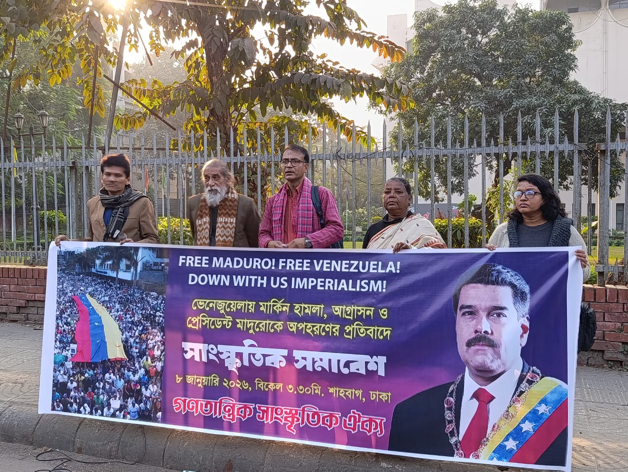 ভেনেজুয়েলায় মার্কিন আগ্রাসনের প্রতিবাদে জাতীয় প্রেসক্লাবের সামনে সাংস্কৃতিক সমাবেশ