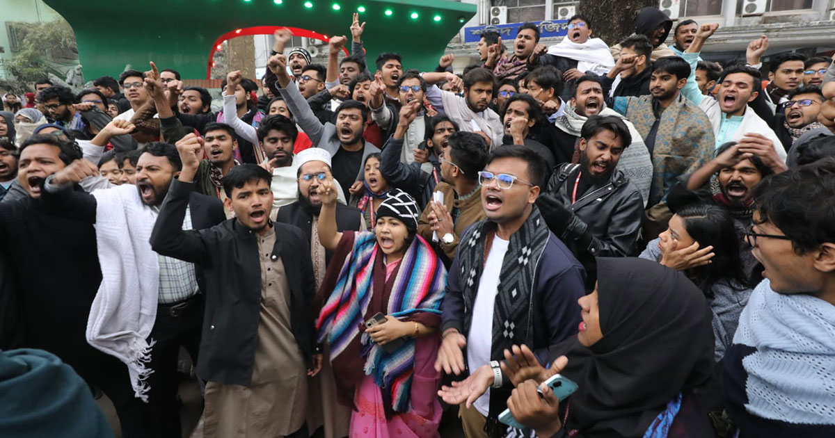 জগন্নাথের নির্বাচন স্থগিত করার প্রতিবাদে শিক্ষার্থীরা বিক্ষোভ করে