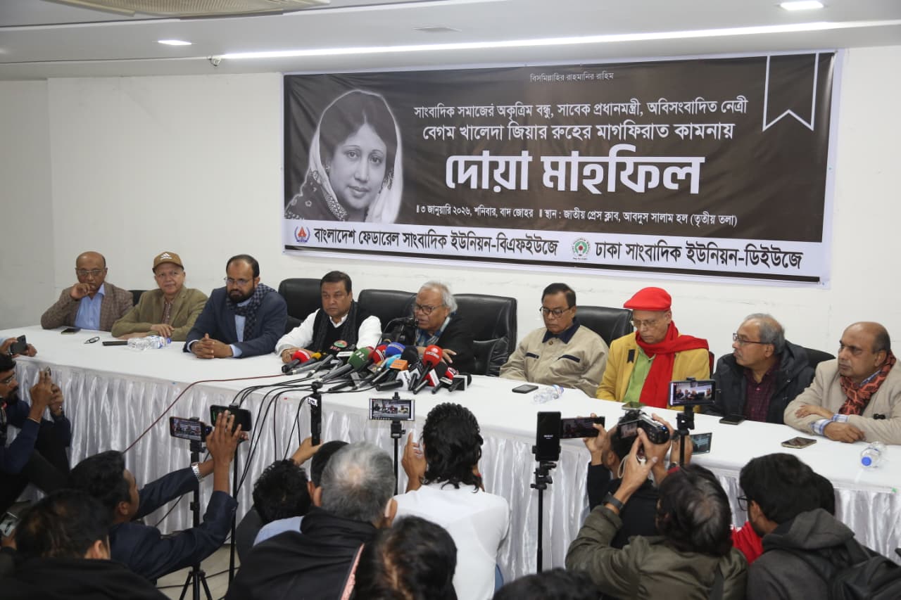 বেগম খালেদা জিয়ার রুহের মাগফিরাত কামনায় ডিইউজে ও বিএফইউজের দোয়া মাহফিল