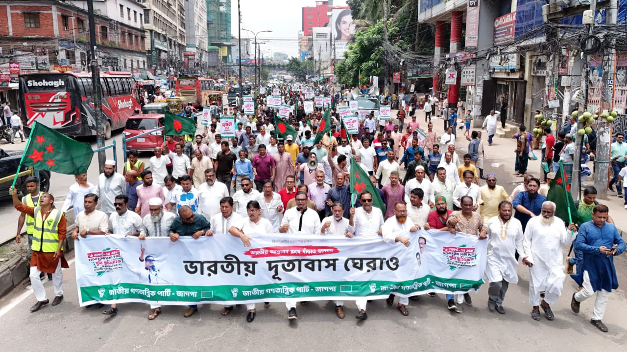 ভারতীয় আগ্রাসনের বিরুদ্ধে জাতীয় গণতান্ত্রিক পার্টি- জাগপা ঢাকায় বুধবার ভারতীয় দূতাবাস ঘেরাও কর্মসূচি পালন করে। ছবি : আবু সুফিয়ান রতন।
