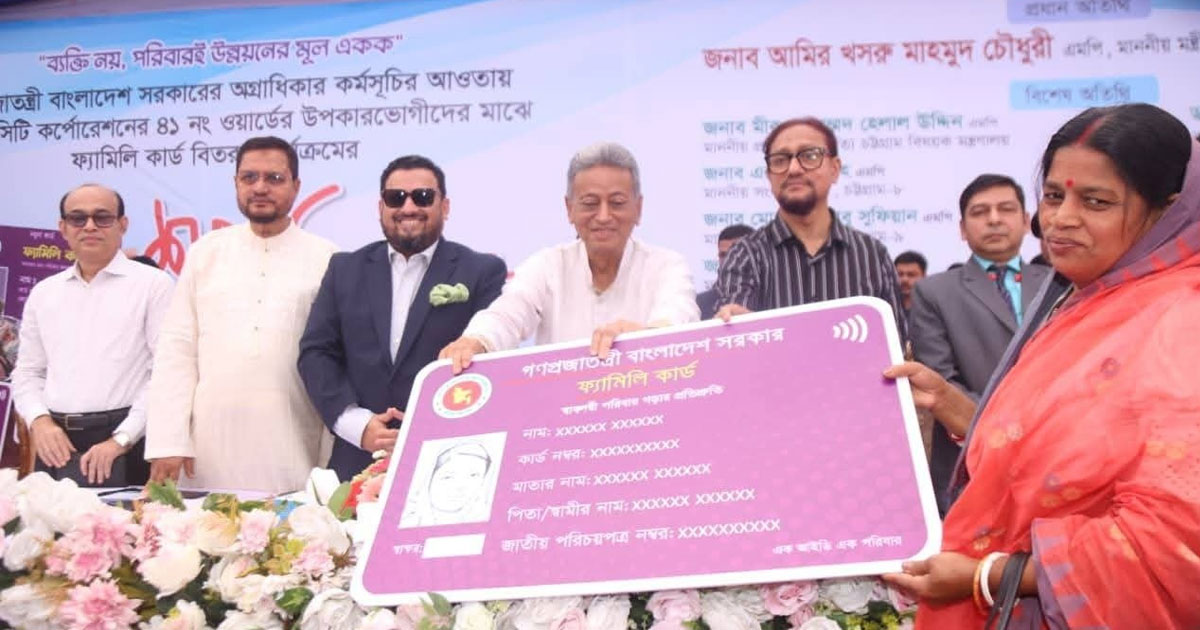 চট্টগ্রামে পতেঙ্গা ৪১ ওয়ার্ডে বিমানবন্দর উচ্চ বিদ্যালয় প্রাঙ্গণে ‘ফ্যামিলি কার্ড’ বিতরণ পাইলট প্রকল্পের শুভ উদ্বোধন করেন মাননীয় অর্থ ও পরিকল্পনা মন্ত্রী জনাব আমির খসরু মাহমুদ চৌধুরী